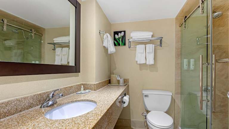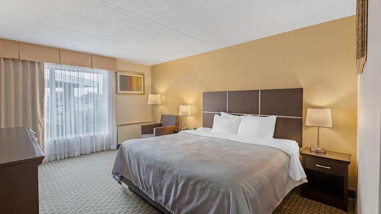 Quality Inn & Suites bietet eine heimelige Atmosphäre mit freundlichem Personal, das gerne bei Anliegen der Gäste behilflich ist. Das Hotel verfügt über 136 Zimmer und eine Vielzahl von Annehmlichkeiten wie einen Kamin, Geschäfte, ein Business-Center und einen gemütlichen TV-Raum. Die Räumlichkeiten sind durch einen Aufzug leicht zugänglich und bieten auch behindertengerechte Einrichtungen.