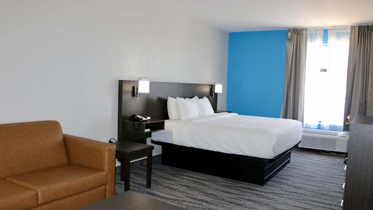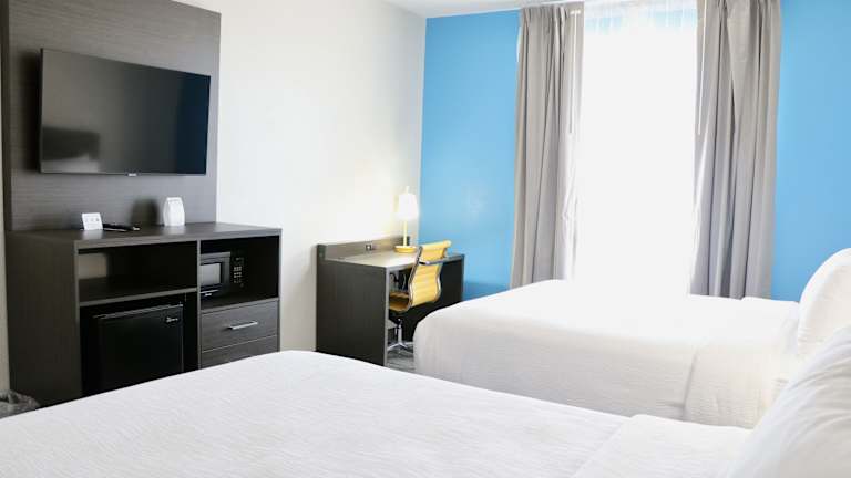 Die Zimmer im Quality Inn & Suites sind klimatisiert und bieten ein behagliches Raumklima. Jedes Zimmer ist mit einem Sofabett, einem Schreibtisch, einem Kühlschrank, einer Mikrowelle sowie einer Tee-/Kaffeemaschine ausgestattet. Zudem sind die Zimmer mit einem Telefon, einem TV-Gerät und kostenfreiem Wifi versehen. Die Badezimmer verfügen über eine Dusche und eine Badewanne sowie Kosmetikartikel für zusätzlichen Komfort. Einige Zimmer bieten Blick auf den Pool und spezielle rollstuhlgerechte Unterkünfte sind ebenfalls verfügbar.