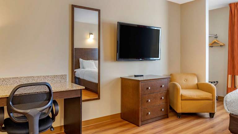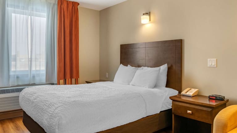 Die Zimmer im Quality Inn sind mit einem Kingsizebett, einem Sofabett, einer Heizung, einem Kühlschrank, einer Mikrowelle sowie einer Tee-/Kaffeemaschine ausgestattet. Jedes Zimmer beinhaltet ein Badezimmer mit Dusche. Es stehen rollstuhlgerechte Zimmer mit einem barrierefreien Bad zur Verfügung. Familien- und Nichtraucherzimmer sind ebenfalls vorhanden.