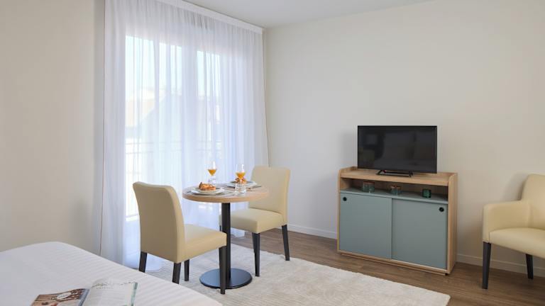 Die Zimmer sind mit einem Flachbild-TV und einem eigenen Badezimmer mit Dusche und Haartrockner eingerichtet. Jedes Zimmer verfügt über eine Küchenzeile, die den Gästen die Zubereitung eigener Mahlzeiten ermöglicht. Bei Aufenthalten von mehr als 2 Nächten wird ein leichter Reinigungsservice angeboten, wobei Bettwäsche und Handtücher nicht gewechselt werden. Bei Aufenthalten von 7 bis 29 Nächten ist eine wöchentliche Reinigung mit Wechsel der Bettwäsche und Handtücher sowie die Endreinigung enthalten.