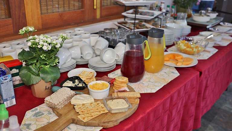 In der Unterkunft wird ein vielfältiges Frühstück angeboten, das als Buffet, á la carte oder in kontinentaler Form serviert wird. Es sind Optionen für spezielle Ernährungsbedürfnisse auf Anfrage verfügbar. Gäste können im Garten der Unterkunft entspannen und bei gutem Wetter die Grillmöglichkeiten nutzen.