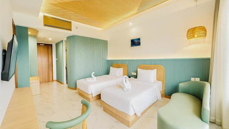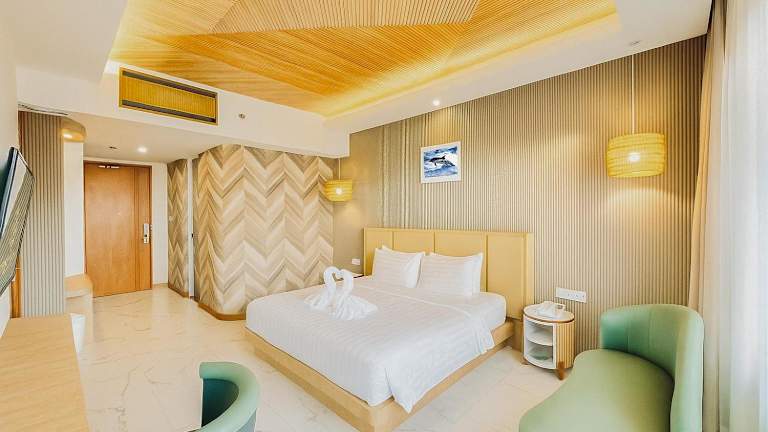 Die Zimmer im Queen of the South Beach Resort sind in warmen Farben gehalten und mit traditionellen Holzmöbeln eingerichtet. Jedes Zimmer verfügt über einen eigenen Balkon, Sat-TV, eine Minibar sowie Kaffee- und Teezubehör. Einige Zimmer bieten sogar ein separates Wohnzimmer für zusätzlichen Komfort.