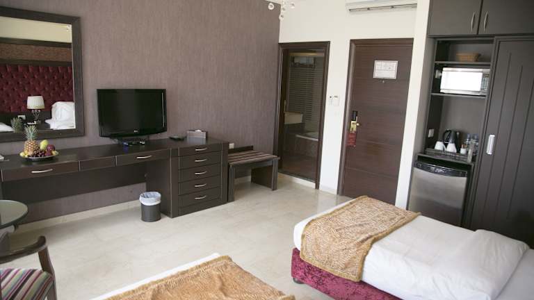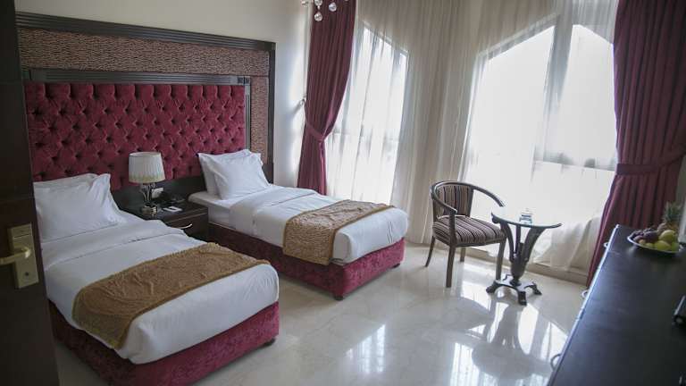 Das Queen's Suite Hotel heisst Sie in der lebhaften Makdessi-Strasse willkommen, die bekannt ist für ihre Geschäfte und Bars. Es bietet klimatisierte Zimmer mit Whirlpool-Badewannen, luxuriösen Stoffen und Kronleuchtern. Des Weiteren stehen kostenfreies Wifi und ein LCD-Sat-TV mit DVD-Player in allen Unterkünften zur Verfügung. Jedes der eigenen Badezimmer ist mit Pflegeprodukten und einem Haartrockner ausgestattet.