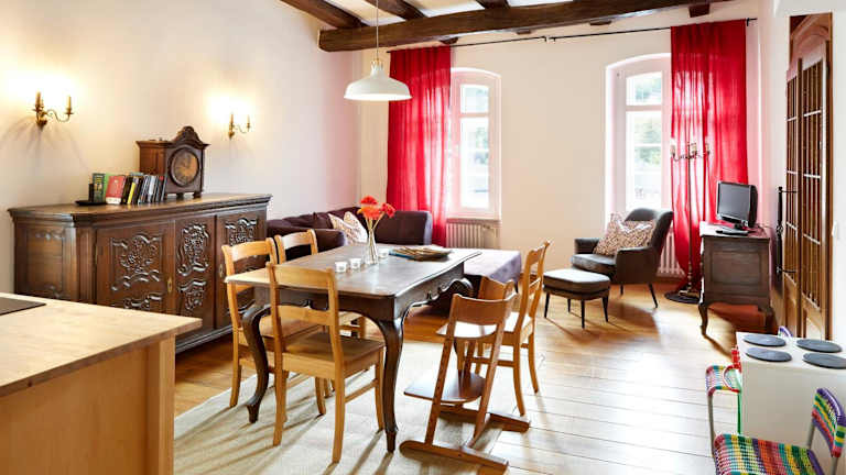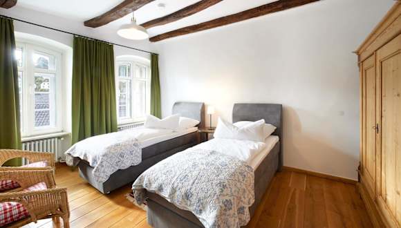 Die Ferienwohnung Quellenhof - Wohnen im Denkmal - Wohnung "Hirtenturm" wurde im historischen Kontext errichtet und ermöglicht ein einzigartiges Wohnen im Denkmal. Gäste können zwischen dem Check-in von 16:00 bis 19:00 Uhr wählen und den Check-out zwischen 08:00 und 10:00 Uhr vornehmen. Die Unterkunft hat kostenfreies Wifi sowie einen kostenlosen Privatparkplatz zur Verfügung. Am der Unterkunft sind keine Junggesellen-/Junggesellinnenabschiede oder ähnliche Feiern erlaubt. Haustiere sind gestattet, jedoch können Gebühren anfallen.