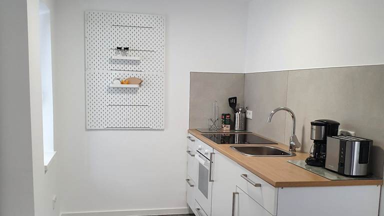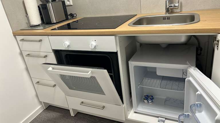 Die Unterkunft verfügt über eine voll ausgestattete Küche mit Kühlschrank, Kaffeemaschine, Ofen, Herdplatte, Toaster und Wasserkocher, was die Zubereitung eigener Mahlzeiten ermöglicht.