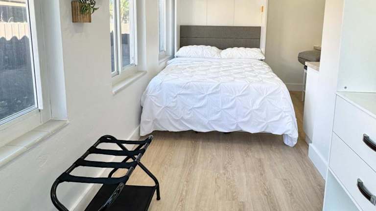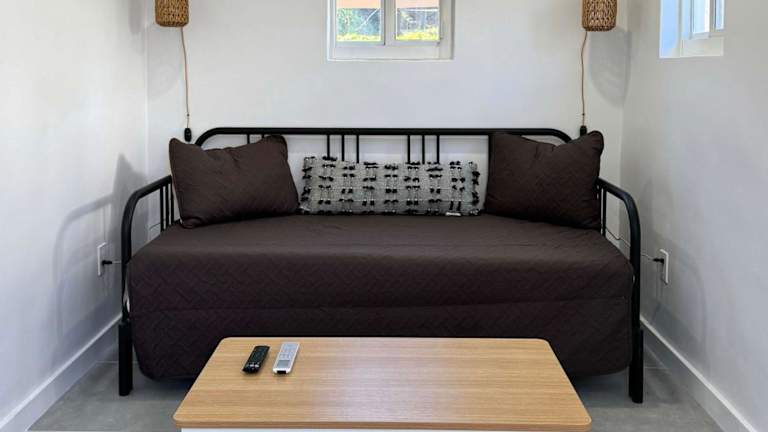 Das Ferienhaus besteht aus einem separaten Schlafzimmer, einem Wohnzimmer und einer voll ausgestatteten Küche, die mit einem Kühlschrank und einer Mikrowelle ausgestattet ist. Es bietet zudem ein Badezimmer, Handtücher und Bettwäsche.