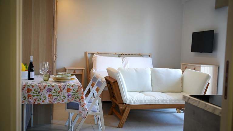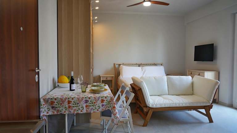 Die Ferienwohnung verfügt über 1 Schlafzimmer, ein Wohnzimmer sowie ein Badezimmer mit Bidet und Dusche. Handtücher und Bettwäsche werden bereitgestellt. Klimaanlage sorgt für eine angenehme Bequemlichkeit.