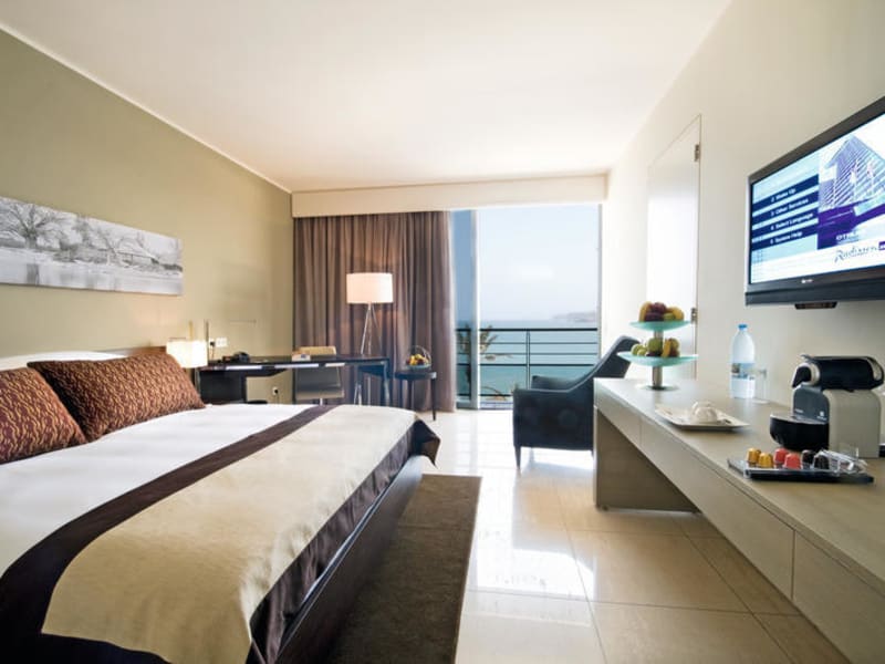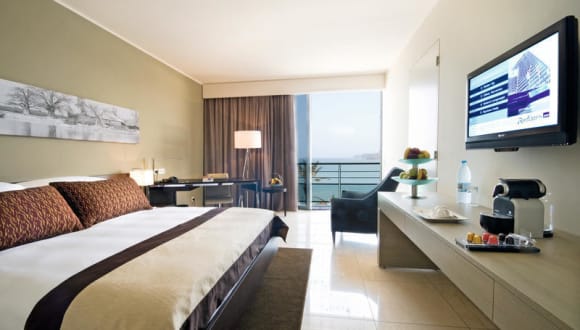 Die Zimmer sind mit Klimaanlage, Kühlschrank, Minibar und Fernseher ausgestattet. Jedes Zimmer verfügt über ein eigenes Bad mit Dusche. Gäste haben die Möglichkeit, den Meerblick von Balkon oder Terrasse zu geniessen. Für Familien stehen entsprechende Zimmer zur Verfügung. Die Ausstattung der Zimmer umfasst auch einen Schreibtisch, einen Safe und Hausschuhe.