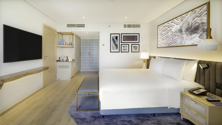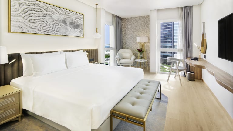 Wake up to generous views of the city and sea in one of our bright and airy rooms and suites, designed with your comfort in mind. All rooms feature marble bathrooms, high-speed Wi-Fi, robes, slippers, and a minibar.