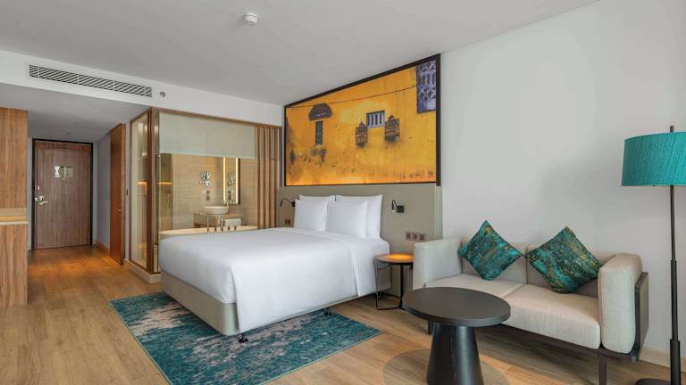 Die klimatisierten Zimmer sind ausgestattet mit einem Kleiderschrank, einem Safe, einem TV, einem Balkon und einem eigenen Badezimmer mit einer Dusche. Jedes Zimmer hat einen Sitzbereich.