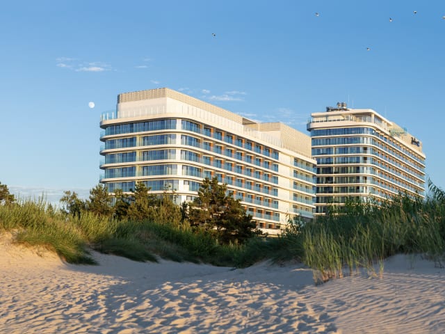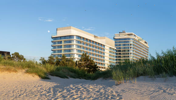 Das Radisson Blu Resort Swinoujscie bietet ein luxuriöses Ambiente und verfügt über moderne Annehmlichkeiten. Es wurde 2017 eröffnet und besteht aus einem Gebäude mit 13 Etagen und insgesamt 340 Zimmern. Zu den besonderen Einrichtungen gehören ein infinity Pool auf der Dachterrasse mit Blick auf das Meer sowie mehrere Pools, darunter ein Aquapark und ein Sport-Pool.