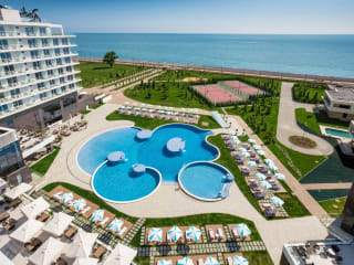 Das Radisson Collection Paradise Resort and Spa in Sochi bietet seinen Gästen einen luxuriösen Aufenthalt inmitten einer atemberaubenden Strandkulisse. Mit erstklassigem Service, geräumigen Zimmern und einem vielfältigen Freizeitangebot ist dieses 5-Sterne-Resort ideal für einen entspannten und unvergesslichen Urlaub.