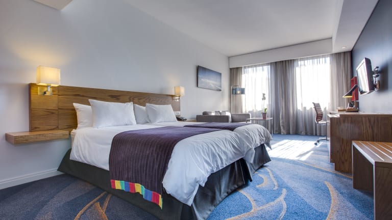 Das Hotel bietet verschiedene Zimmertypen, darunter Standardzimmer und Junior Suiten. Die Standardzimmer sind Nichtraucherzimmer und bieten ca. 28 m² Platz mit Blick auf die Stadt und den Tafelberg. Zur Ausstattung gehören eine individuell regelbare Klimaanlage, ein Safe, ein Flatscreen-TV und ein Badezimmer mit Dusche. Die Junior Suiten mit ca. 44 m² verfügen über ein kombiniertes Wohn-/Schlafzimmer sowie eine Kaffeemaschine. WLAN ist in allen Zimmern ohne Gebühr verfügbar.