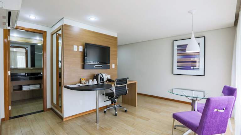 Das Radisson Hotel Belém bietet insgesamt 140 Zimmer, die alle klimatisiert sind und eine moderne Dekoration sowie eine angenehme Farbgestaltung aufweisen. Die Zimmer verfügen über Fliesenböden, einen Schreibtisch mit ergonomischem Stuhl und einen Flachbild-TV. Zur weiteren Ausstattung gehören ein Safe, eine Minibar und ein Kühlschrank. WLAN ist in allen Zimmern verfügbar. Die Badezimmer sind mit einer Dusche oder Badewanne, einem Haartrockner, Bademänteln und Hausschuhen ausgestattet.