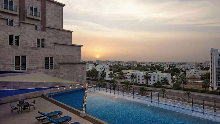 Das Radisson Hotel Muscat Panorama bietet Übernachtungsmöglichkeiten in einer modernen und stilvollen Atmosphäre. Gästen stehen verschiedene Annehmlichkeiten zur Verfügung, darunter ein Fitnesscenter, ein Innenpool, eine Bar sowie ein Restaurant, in dem Frühstück serviert wird. Darüber hinaus sind Einrichtungen wie ein Concierge-Service, eine Gepäckaufbewahrung und Währungsumtausch vorhanden.
