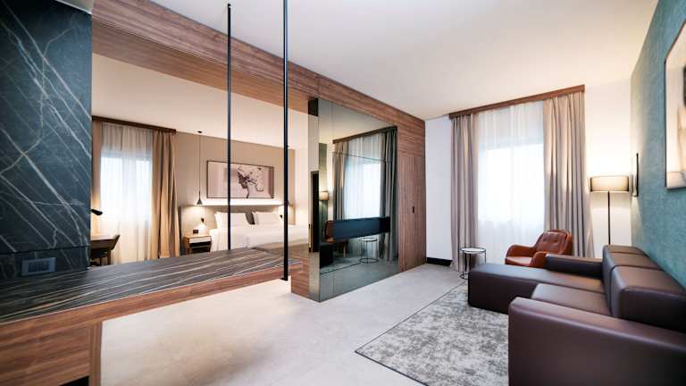 Die Zimmer sind klimatisiert und beinhalten Annehmlichkeiten wie ein Kingsize-Bett, eine Minibar, einen Safe und einen Flachbildfernseher. Für zusätzlichen Bequemlichkeit sorgen ein Schreibtisch, ein Wasserkocher und ein eigenes Badezimmer mit Dusche. Die Badezimmer sind mit Kosmetikartikeln und einer Auswahl an Handtüchern ausgestattet. Es sind auch rollstuhlgerechte Zimmer buchbar.