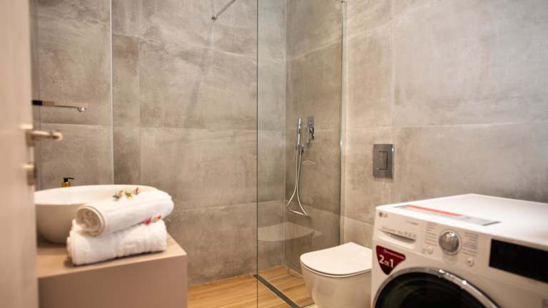 Die Ferienwohnung umfasst zwei Schlafzimmer, ein Wohnzimmer und eine voll ausgestattete Küche mit Kühlschrank und Kaffeemaschine. Ein Badezimmer mit Dusche und Haartrockner ist ebenfalls vorhanden. Handtücher und Bettwäsche werden bereitgestellt, und die Wohnung ist klimatisiert sowie schallisoliert.