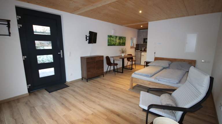 Die Ferienwohnung besteht aus einem Schlafzimmer, einer voll ausgestatteten Küchenzeile sowie einem Badezimmer. Zur Ausstattung gehören ein Flachbild-TV, kostenloses Wifi und Heizung. Die Unterkunft bietet Nichtraucherzimmer, und alle öffentlichen sowie privaten Bereiche sind Nichtraucherzonen.