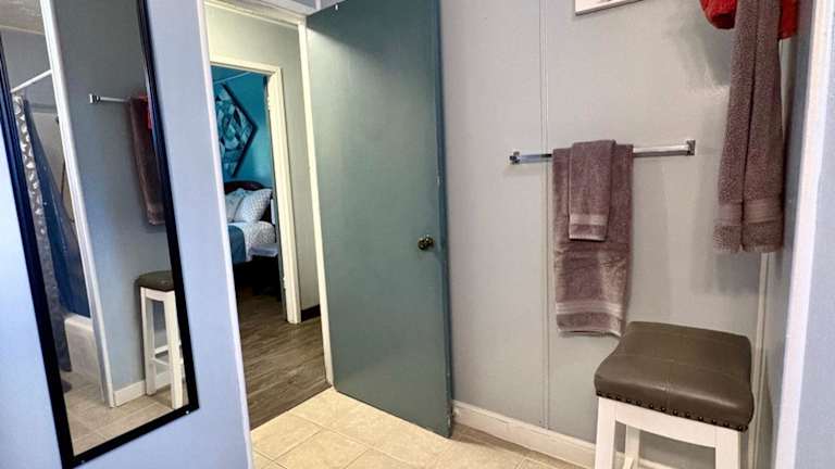 Die Unterkunft verfügt über eine voll ausgestattete Küchenzeile mit Kühlschrank, Mikrowelle, Toaster, Kaffeemaschine und Wasserkocher. Lebensmittellieferung ist auf Anfrage möglich. Bei Bedarf können auch zusätzliche Gebühren anfallen.