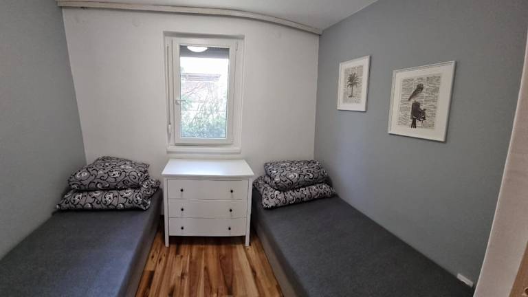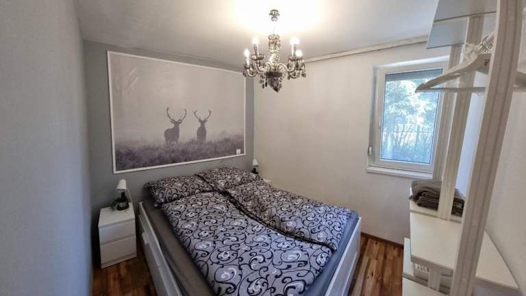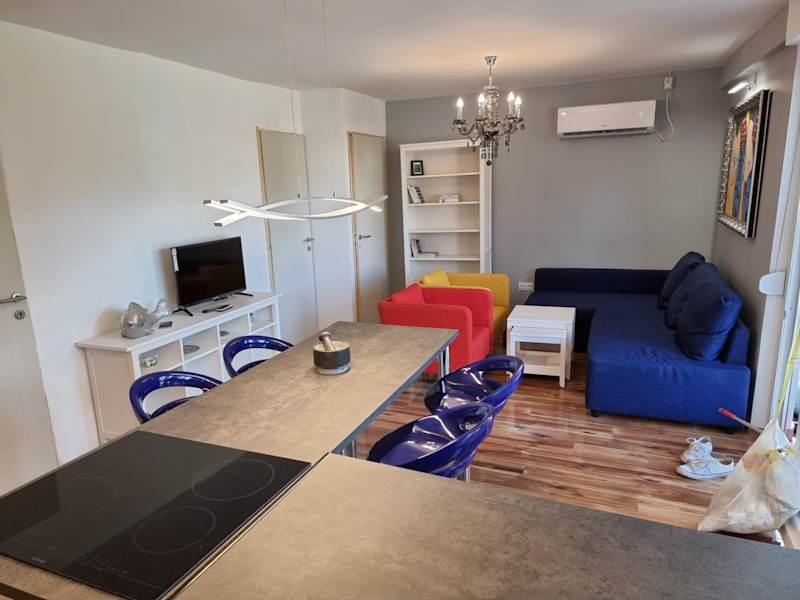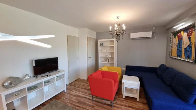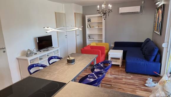 Das klimatisierte Apartment verfügt über 3 Schlafzimmer, ein gemütliches Wohnzimmer und eine voll ausgestattete Küche. Es bietet Platz für 4-7 Personen und bietet einen komfortablen Aufenthalt für Familien oder Gruppen von Freunden.