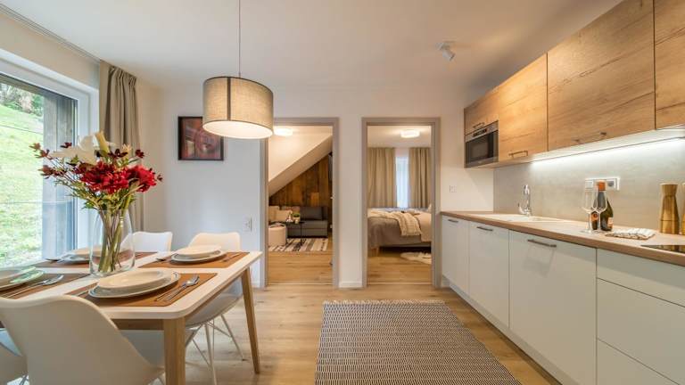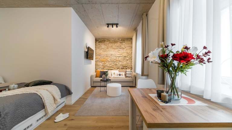 Jede Wohneinheit verfügt über eine voll ausgestattete Küche mit einem Esstisch, einem Flachbild-TV mit Kabelkanälen und einem eigenen Badezimmer mit Dusche und Haartrockner. Ausserdem sind ein Kühlschrank, ein Geschirrspüler, eine Mikrowelle, eine Kaffeemaschine und ein Wasserkocher vorhanden.
