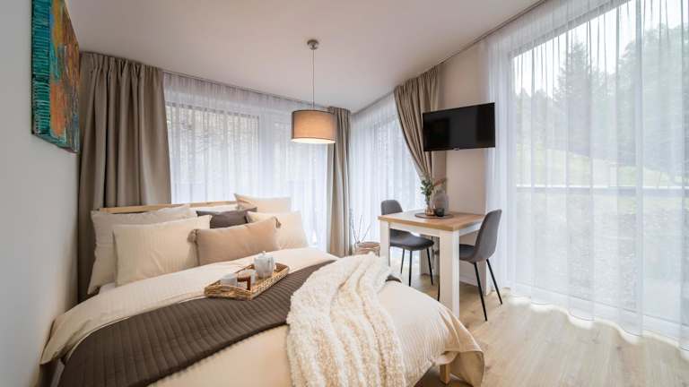 Die Unterkunft Rákosárna Suites & Apartments liegt in Špindlerův Mlýn in der Region Königgrätz, in der Nähe der Bushaltestelle Strážné, die sich in 9,3 km Entfernung befindet. Der nächstgelegene Flughafen, Pardubice, ist 103 km entfernt.