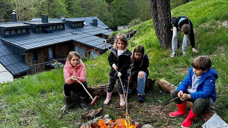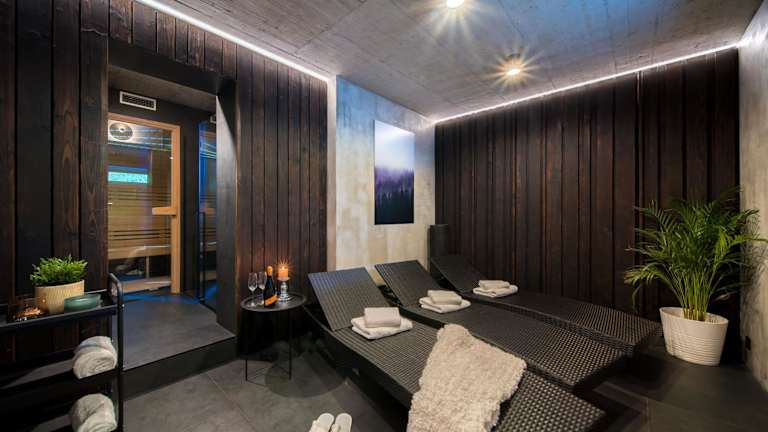 Gäste können nach einem Tag voller Aktivitäten wie Skifahren oder Velofahren im Garten oder in der Gemeinschaftslounge entspannen.