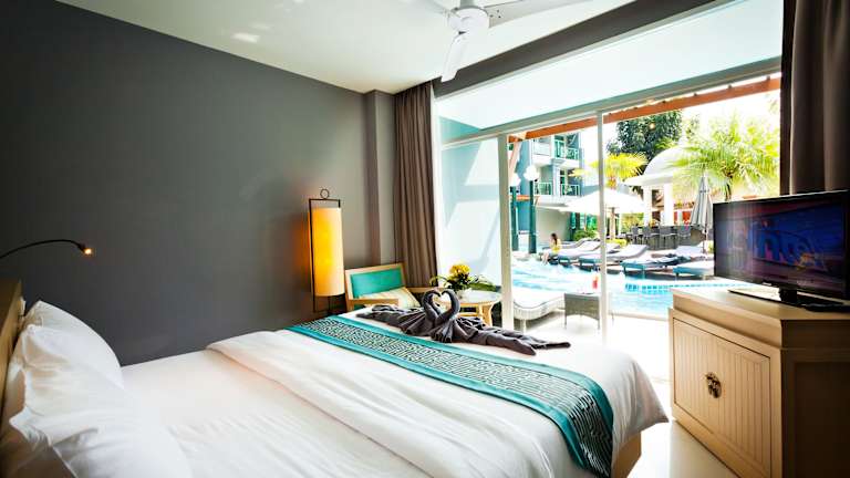 Die klimatisierten Zimmer sind mit modernen Annehmlichkeiten ausgestattet, darunter ein Flachbild-TV, eine Minibar sowie ein Balkon oder eine Terrasse mit Poolblick. Die Badezimmer verfügen über eine Dusche und eine Badewanne, ergänzt durch Haartrockner und Bademäntel. Zu den weiteren Ausstattungen zählen ein Safe, ein Kühlschrank sowie eine Tee-/Kaffeemaschine.