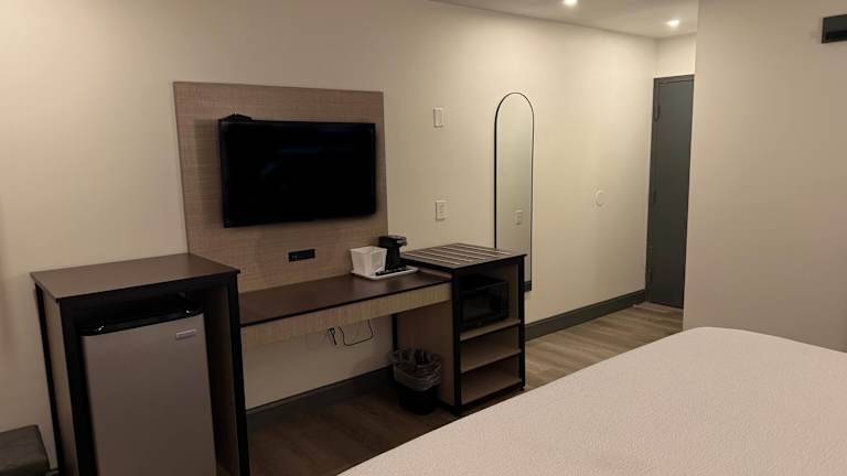 Die Zimmer sind klimatisiert und mit einem Doppelbett, einem Schreibtisch sowie einem Kühlschrank und einer Mikrowelle ausgestattet. Zudem gehören eine Tee-/Kaffeemaschine und ein Bügelset zur Ausstattung. Gäste finden ausserdem ein Telefon, einen TV-Gerät und kostenloses Wifi vor. In den Badezimmern gibt es eine Dusche und einen Haartrockner sowie praktische Kosmetikartikel. Die Unterkunft bietet Nichtraucherzimmer sowie rollstuhlgerechte Zimmer an.