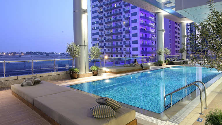 Das Hotel befindet sich zentral in Dubai, etwa 2 km vom Stadtzentrum, 3 km vom Strand und 30 km vom Flughafen entfernt. In unmittelbarer Nähe befinden sich der Golfplatz und der Bahnhof, der nur 500 m entfernt liegt.
