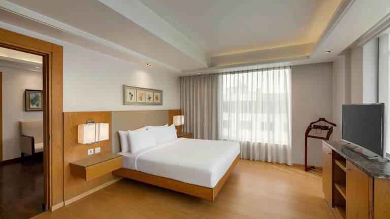 Die Zimmer sind klimatisiert und verfügen über eine Minibar sowie einen gemütlichen Sitzbereich. Jedes Zimmer hat ein eigenes Bad mit Dusche, Haartrockner und kostenfreien Pflegeprodukten. Zudem bietet jedes Zimmer einen Blick auf die Stadt.