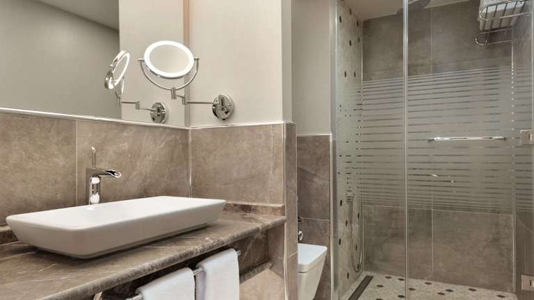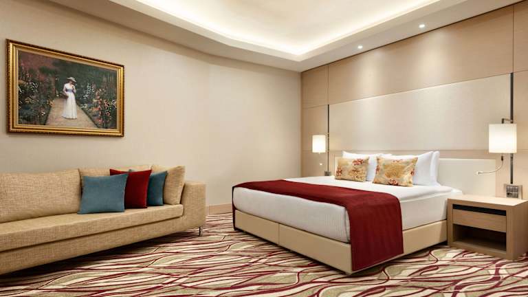Die Zimmer sind mit Teppichböden ausgestattet und bieten Annehmlichkeiten wie eine Klimaanlage, Heizung, einen Safe, eine Minibar sowie eine Tee-/Kaffeemaschine. Zudem sind ein Telefon, ein Fernseher und gratis Wifi verfügbar. Die Badezimmer verfügen über eine Dusche und einen Haartrockner, während spezielle Kosmetikartikel zur Verfügung stehen. Es sind auch rollstuhlgerechte Zimmer mit barrierefreiem Bad buchbar, zusätzlich werden Familien- und Nichtraucherzimmer angeboten.