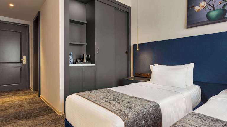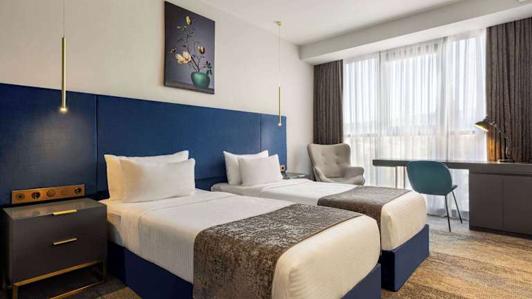 Die klimatisierten Zimmer sind mit Teppichböden ausgestattet und bieten ein Kingsize-Bett. Zustellbetten können auf Anfrage bereitgestellt werden. Die Unterbringung umfasst einen Schreibtisch, Kühlschrank, Tee-/Kaffeemaschine, Telefon, TV und kostenfreies Wifi. Ein Haartrockner, Bademäntel und Kosmetikartikel sind im Badezimmer vorhanden. Für zusätzlichen Komfort stehen Hausschuhe bereit. Die Unterkunft bietet verschiedene Zimmerkategorien, darunter Familien-, Nichtraucher- und Raucherzimmer sowie rollstuhlgerechte Zimmer mit barrierefreiem Badezimmer.