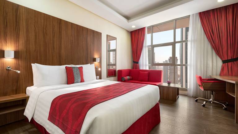 Die Zimmer des Hotels sind mit raumhohen Fenstern ausgestattet, die einen Blick auf die Stadt bieten. Jedes Zimmer verfügt über kostenloses WLAN, einen Arbeitsbereich, eine Sitzecke, einen Flachbild-HD-TV, eine Minibar, Tee- und Kaffeezubehör sowie einen Safe und ein Bügeleisen/-brett. Es stehen Nichtraucherzimmer zur Verfügung.