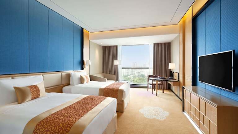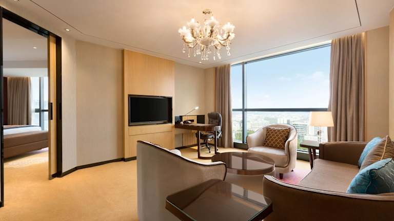 Die klimatisierten Zimmer sind mit einem Flachbild-Kabel-/Sat-TV, einem Sitzbereich mit Sofa, einem Safe sowie einer Minibar und einem Wasserkocher ausgestattet. Das eigene Bad bietet weiche Bademäntel und kostenfreie Pflegeprodukte. Die Zimmer sorgen für eine heimelige Atmosphäre und bieten genügend Platz für einen angenehmen Aufenthalt.