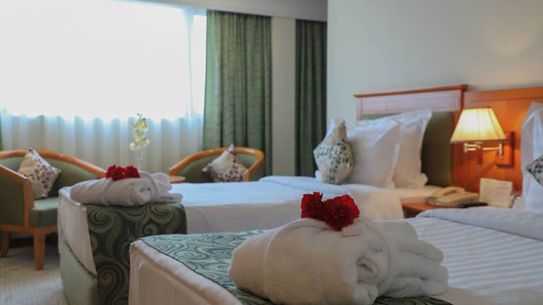 Die klimatisierten Zimmer sind mit Teppichboden ausgestattet und bieten Bequemlichkeiten wie Minibar, Wasserkocher, Safe, Telefon mit Direktwahl sowie Satelliten-TV. Jedes Zimmer umfasst ein eigenes Bad mit Dusche und Badewanne, Haartrockner, Bademänteln und Kosmetikartikeln. Die Zimmer sind teilweise rollstuhlgerecht und erfüllen die Bedürfnisse von Familien sowie Nichtraucher. Hausschuhe und eine Auswahl an Handtüchern sind in den Unterkünften vorhanden.