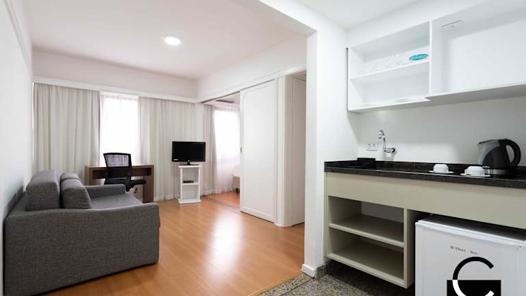 In den Zimmern befinden sich eine Kochnische und ein Badezimmer. Die Zimmer sind mit einem Doppelbett und einem Sofabett ausgestattet. Zustellbetten können angefordert werden. Weitere Annehmlichkeiten sind ein Safe, eine Minibar, ein Schreibtisch, ein Telefon, ein TV-Gerät sowie kostenloses Wifi. Das Badezimmer ist mit einer Dusche und einem Haartrockner ausgestattet, zusätzlich sind Kosmetikartikel vorhanden. Es stehen Familien- und Nichtraucherzimmer zur Verfügung.