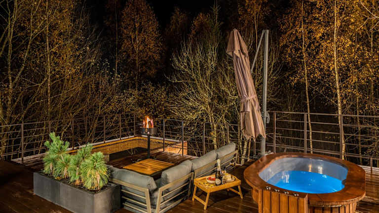 Das Ferienhaus umfasst 1 Schlafzimmer und ist mit einer Küche versehen, die einen Kühlschrank und eine Mikrowelle beinhaltet. Ein Flachbild-TV, ein Sitzbereich und ein Badezimmer mit Dusche gehören ebenfalls zur Ausstattung. Zudem steht ein Whirlpool zur Verfügung.