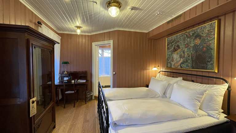Die Zimmer im Ramme Fjordhotell - Unike Hoteller bestehen aus Doppel- oder Zweibettzimmern sowie luxuriösen Suiten. Alle Zimmer sind mit antiken Möbeln und einem eigenen Bad mit kostenlosen Toilettenartikeln ausgestattet. Allergikerfreundliche Zimmer sind ebenfalls verfügbar.