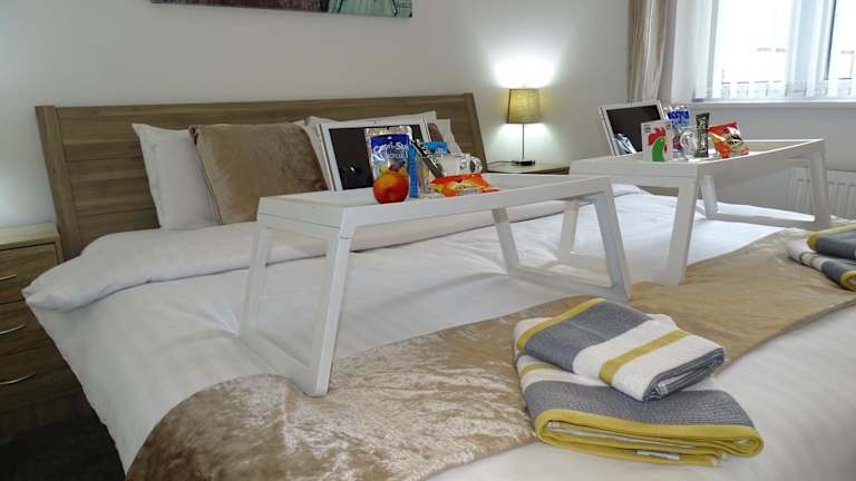 Ein englisches Frühstück ist gegen einen Aufpreis von £7.99 pro Person verfügbar, und kann im nearby Old Village Cafe eingenommen werden. Lebensmittellieferung kann ebenfalls in Anspruch genommen werden, wobei zusätzliche Gebühren anfallen könnten. Bei der Unterkunft befinden sich ein Minimarkt und ein Café.