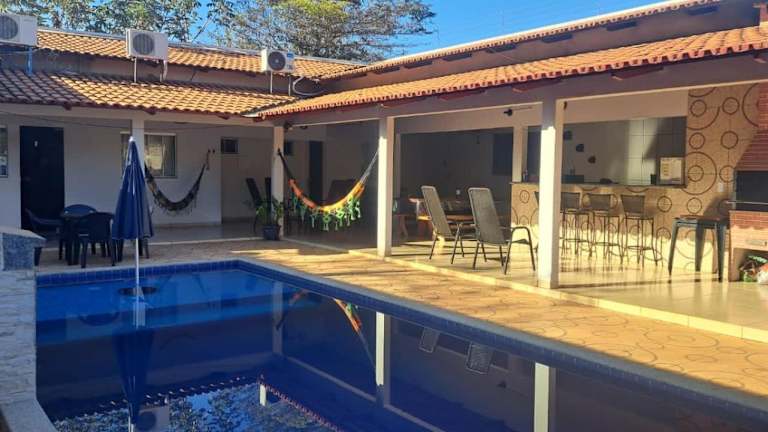 Rancho Peixe Grande Luiz Alves Rio Araguaia bietet Übernachtungsmöglichkeiten mit Balkonen, einem eigenen Pool und kostenlosem Wifi. Die Unterkunft ist familiengeführt und ideal für Gäste, die eine ruhige und private Umgebung suchen.