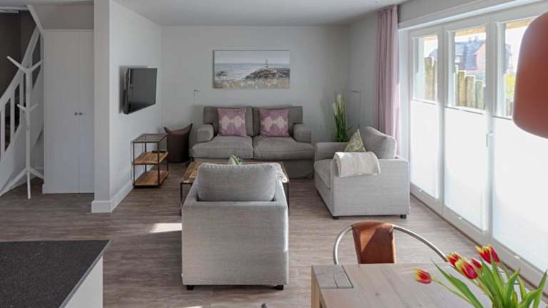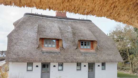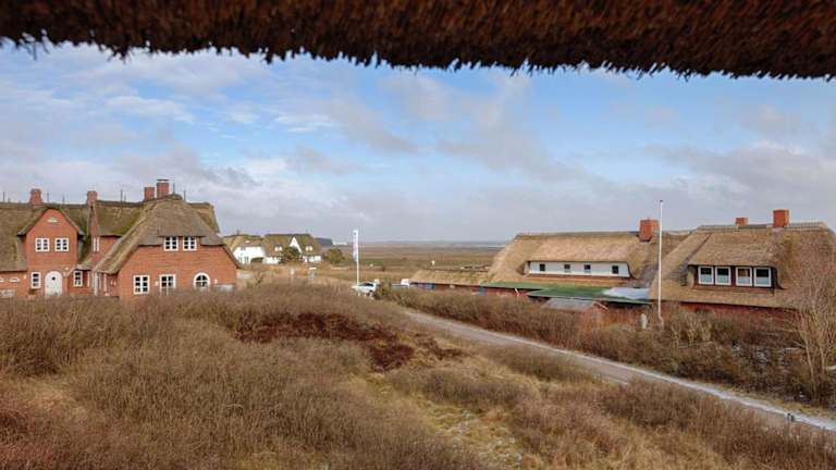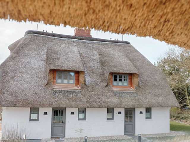 Rantum Dorf - Ferienappartments im Reetdachhaus 1& 2 bietet eine angenehme Atmosphäre mit einem schönen Garten und einer Terrasse mit Meerblick. Die Unterkunft ist ideal für Gäste, die die Ruhe der Küste geniessen möchten.