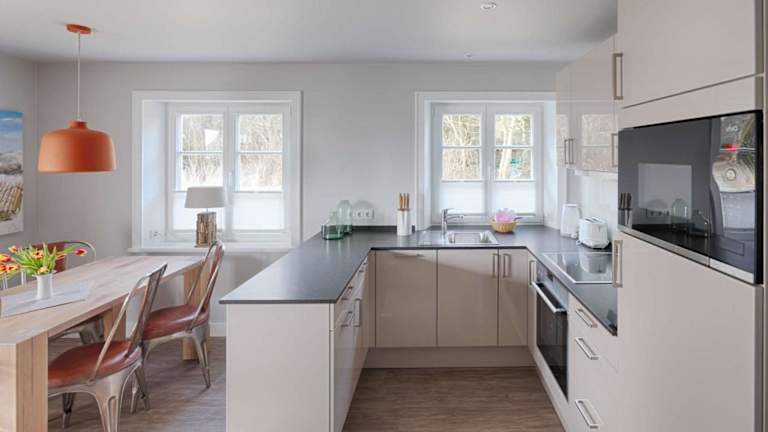 Die Ferienappartments bieten eine gut ausgestattete Küche mit Kühlschrank, Geschirrspüler, Ofen und Kaffeemaschine, sodass Gäste ihre eigenen Mahlzeiten zubereiten können. Es sind keine Informationen zu weiteren Verpflegungsmöglichkeiten vorhanden.