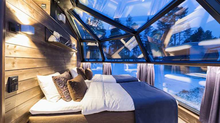 Jedes Iglu verfügt über Glaswände im Schlafzimmer, die den Blick auf den Himmel ermöglichen. Die Ausstattung umfasst eine eigene Sauna, ein Bad sowie eine Küchenzeile. WLAN ist in jedem Iglu kostenlos nutzbar.