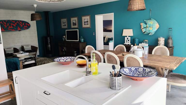 Das Ferienhaus verfügt über 4 Schlafzimmer, ein Wohnzimmer mit Flachbild-TV, eine gut ausgestattete Küche mit Kühlschrank und Geschirrspüler, sowie 2 Badezimmer mit Dusche. Handtücher und Bettwäsche werden bereitgestellt.