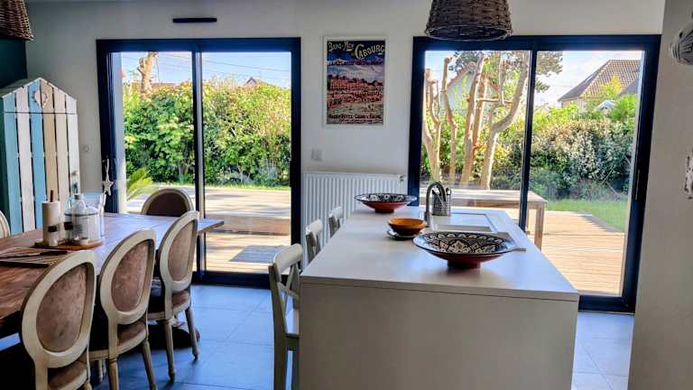 RARE à Cabourg - Maison neuve avec piscine et jardin ist ein modernes Ferienhaus, das über einen saisonalen Aussenpool verfügt. Die Unterkunft bietet eine heimelige Atmosphäre mit Gartenblick und kostenlosem Wifi. Ein eigener Garten und eine Terrasse sind ebenfalls vorhanden.