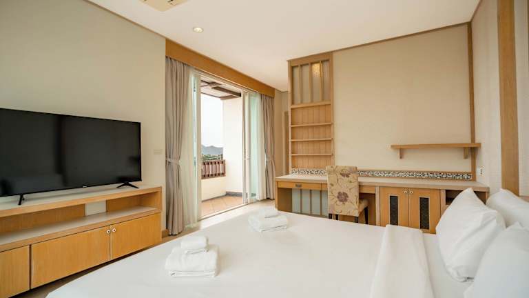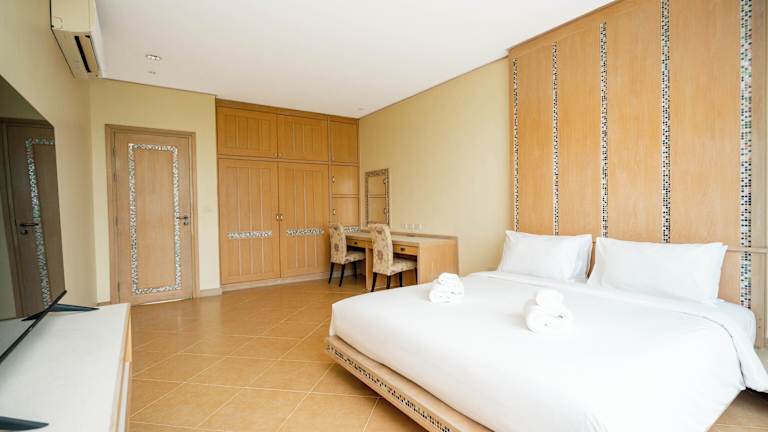 Die Zimmer sind mit einer Kochnische, einem Badezimmer, einem Balkonu oder einer Terrasse mit Meerblick sowie einer Klimaanlage ausgestattet. Zur weiteren Einrichtung gehören ein Doppelbett, ein Queensize-Bett oder ein Kingsize-Bett. Zudem stehen ein Safe, eine Minibar, ein Schreibtisch, ein TV-Gerät mit Satelliten-/Kabelempfang, ein Telefon sowie kostenfreies Wifi zur Verfügung. Die Badezimmer sind mit einer Dusche und einem Haartrockner ausgestattet.