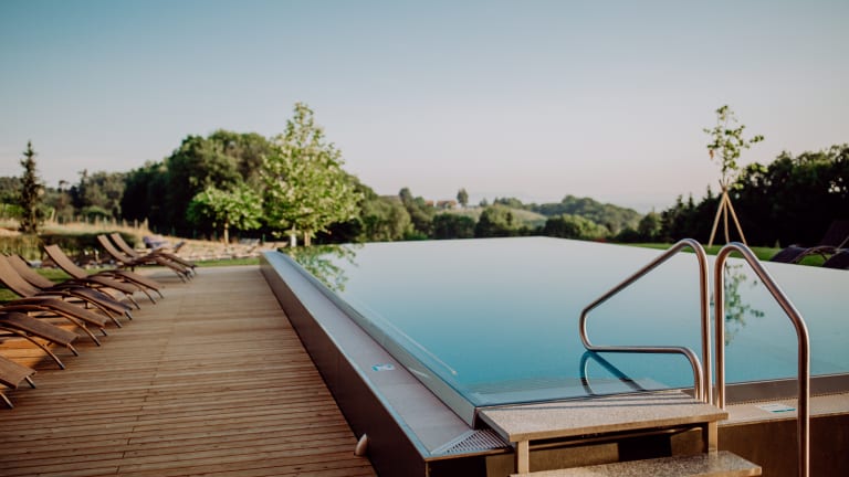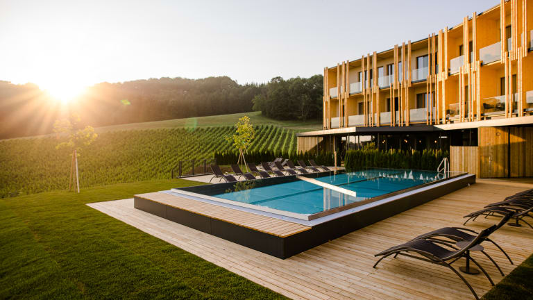 Das Ratscher Landhaus steht für puren Genuss an der Südsteirischen Weinstraße. Ob im ganzjährig geöffneten Hotel mit Weingartenrestaurant, Weinbar, Kaffeehaus & Wellnessbereich – Michaela und Andreas Muster bringen ihren Gästen das Lebensgefühl der südlichen Steiermark mit Leidenschaft und viel Liebe zum Detail näher. Perfekt an der ältesten und wohl auch bekanntesten Weinstraße der Region gelegen, ist das Haus sowohl Ausgangspunkt für Besuche der umliegenden Weingüter und Buschenschänken als auch Rückzugsort für Momente der absoluten Ruhe und Entspannung. Genüssliches Nichtstun im Wellnessbereich, wahlweise in den Natur- oder beheizten Infinity-Pool eintauchen, auf der Sonnenterrasse. Und mehr als 600 verschiedene Weine im Keller beweisen, dass guter Wein zum südsteirischen Lebensgefühl einfach dazugehört. Abends genießt man im Hotelrestaurant mit Weingartenblick ein mehrgängiges Menü! So werden Urlaubsträume zum Traumurlaub. Im Ratscher Landhaus.