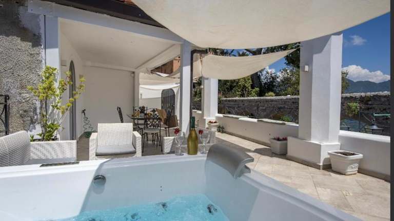 Die Unterkunft Ravello Vingius Suite bietet Übernachtungsmöglichkeiten in einem Ferienhaus mit Zugang zu einem Whirlpool. Es verfügt über eine Veranda und eine Terrasse mit Aussicht auf die Stadt und das Meer. Das Ferienhaus ist klimatisiert.