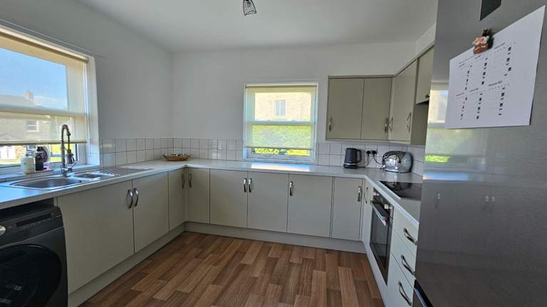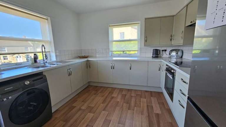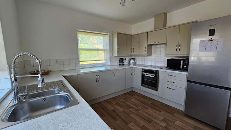 Das Ferienhaus verfügt über 2 Schlafzimmer, eine gut ausgestattete Küche mit Kühlschrank und Ofen, einen Sitzbereich sowie ein Badezimmer mit Dusche. Handtücher und Bettwäsche werden bereitgestellt.